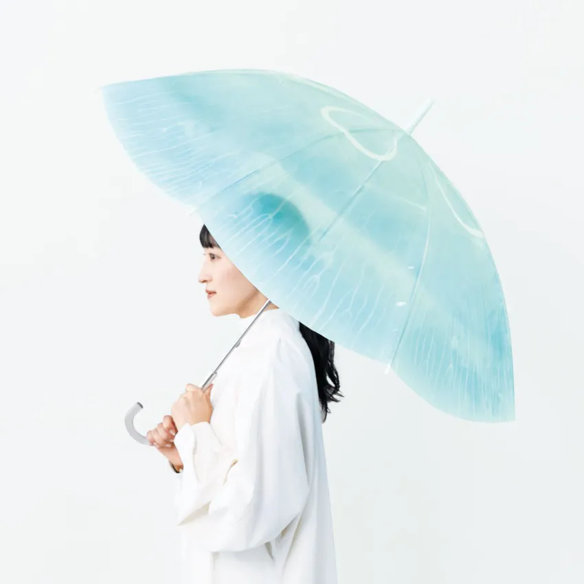 透け感を利用し、クラゲの持つ雰囲気そのままデザインに落とし込んだ透明傘です。