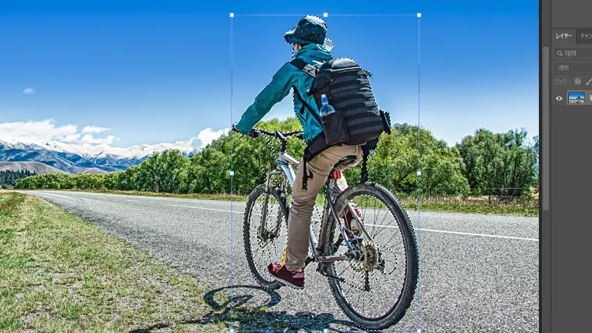 まずは、自転車です。被写体を選択のボタンをクリックすると点線の範囲が選択されました。