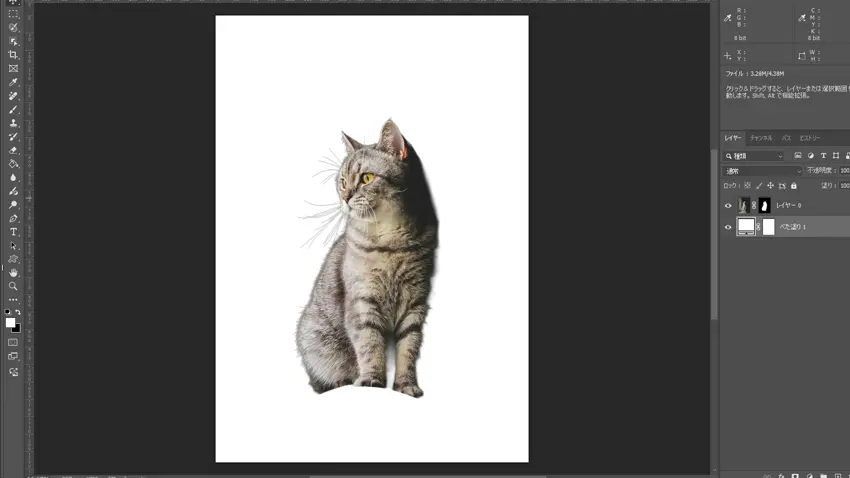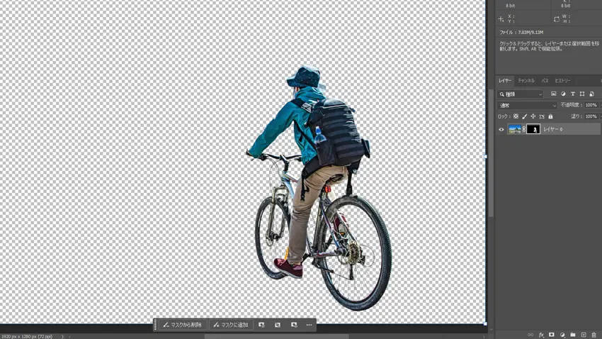 続いて、レイヤーパネルからマスクボタンを押してみると・・・