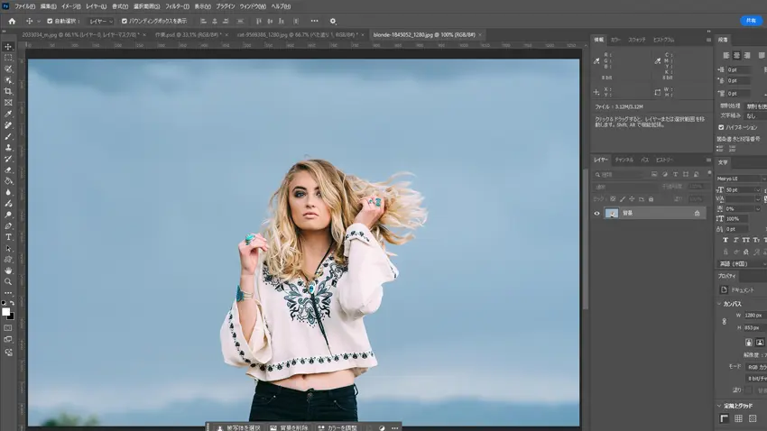 髪がなびいている部分で少し背景の空が抜けきれいていない部分がありましたが、概ね良好な結果が得られています。