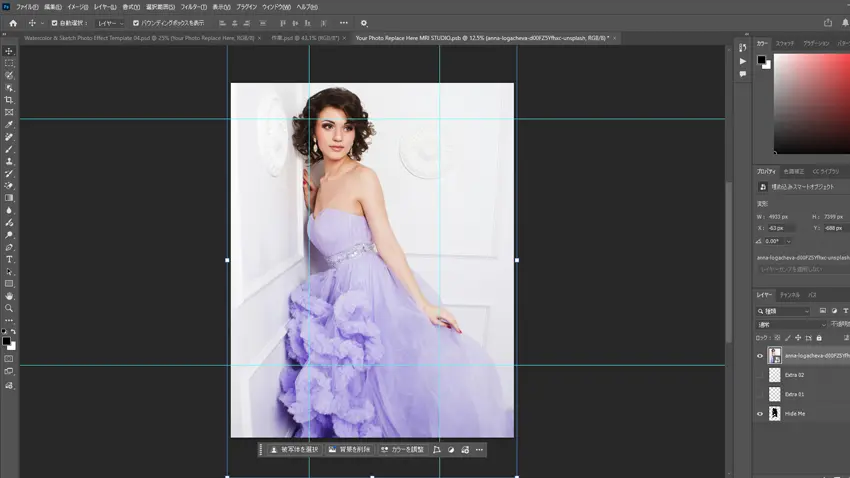 このPSDも以前から紹介しているものと同じで特定のレイヤーをダブルクリックして、新規で表示されたキャンバスに写真(画像)をドロップするだけの簡単な作業です。