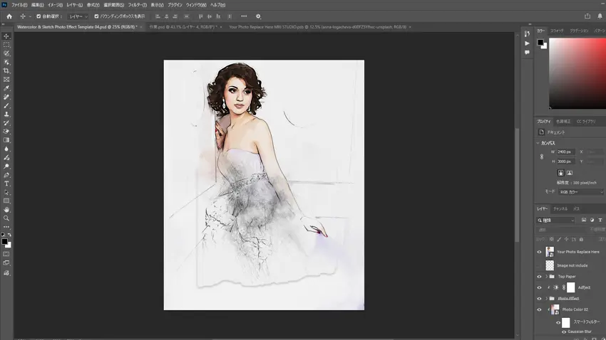 今回は沢山のアクションの中から「Watercolor Pencil Art FREE Template」を使わせていただきました。