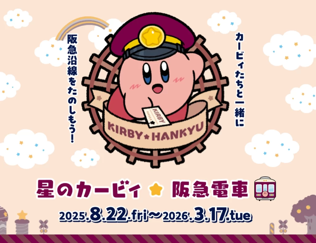 阪急電電車が、人気ゲーム「星のカービィ」とのコラボレーション企画を2025年8月22日(金)から2026年3月17日(火)まで実施します!