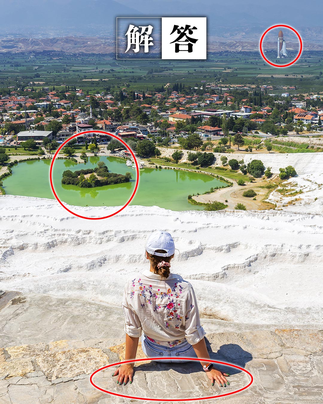 美しい世界遺産の写真で間違い探しにチャレンジしよう!今回はトルコの世界遺産「ヒエラポリス-パムッカレ」です。間違い箇所は3つ!