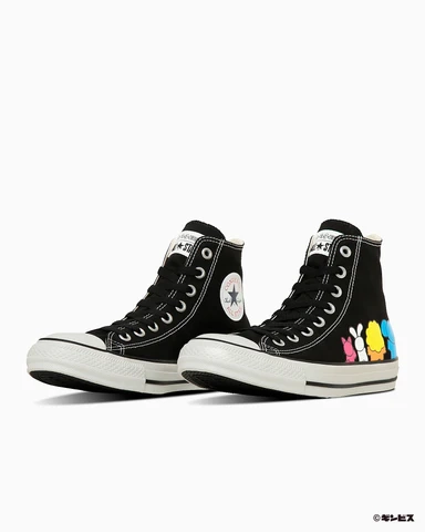 たべっ子どうぶつのパッケージにも描かれているぞうさんやらいおんくん、うさぎさんなどのキャラクターたちがデザインされた「オールスター HI たべっ子どうぶつ」は、黒地にカラフルなキャラクターたちが映える一足。