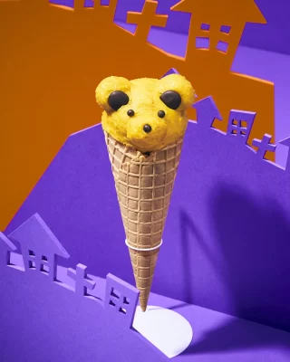 バニラジェラートにかぼちゃペーストが混ぜ込まれた「パンプキンベアジェラート」も食べるのがもったいないくらい可愛い!かぼちゃプリンのような濃厚でほっこりした甘さが楽しめるとのこと。