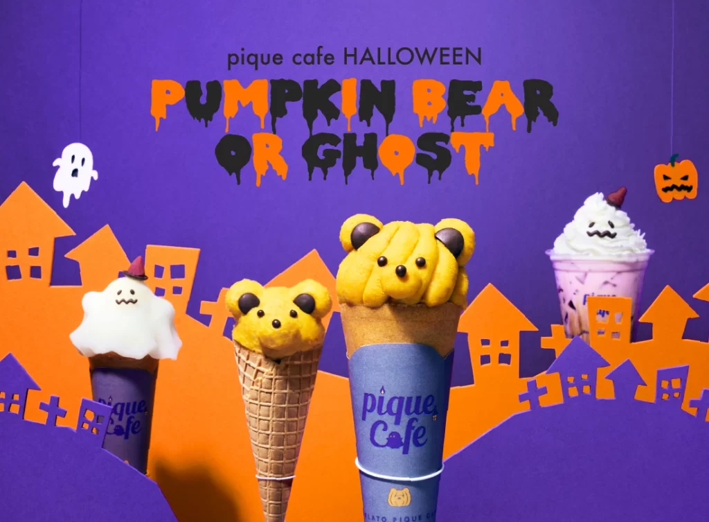 ジェラートピケカフェの今年のハロウィンスイーツは、パンプキンになったくまとおばけがモチーフになったクレープ、ジェラート、ドリンクがラインナップしています。