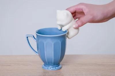 新発売となったのは、カップやお皿に寄り添うようにセットすることで、小型ファンがやさしい風を送り、食べ物や飲み物を冷ましてくれる「猫舌ふーふー」。