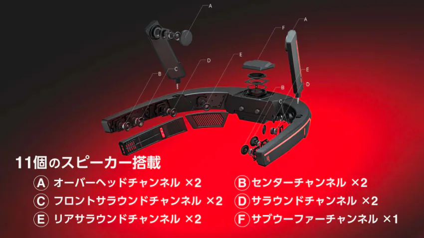 360度全方位からの立体サウンドを11個のスピーカーと7.1.2チャンネルで実現しています。ゲーミングチェアに後付け出来るとのことですので、ゲーミングチェアをお持ちの方には注目の製品です。