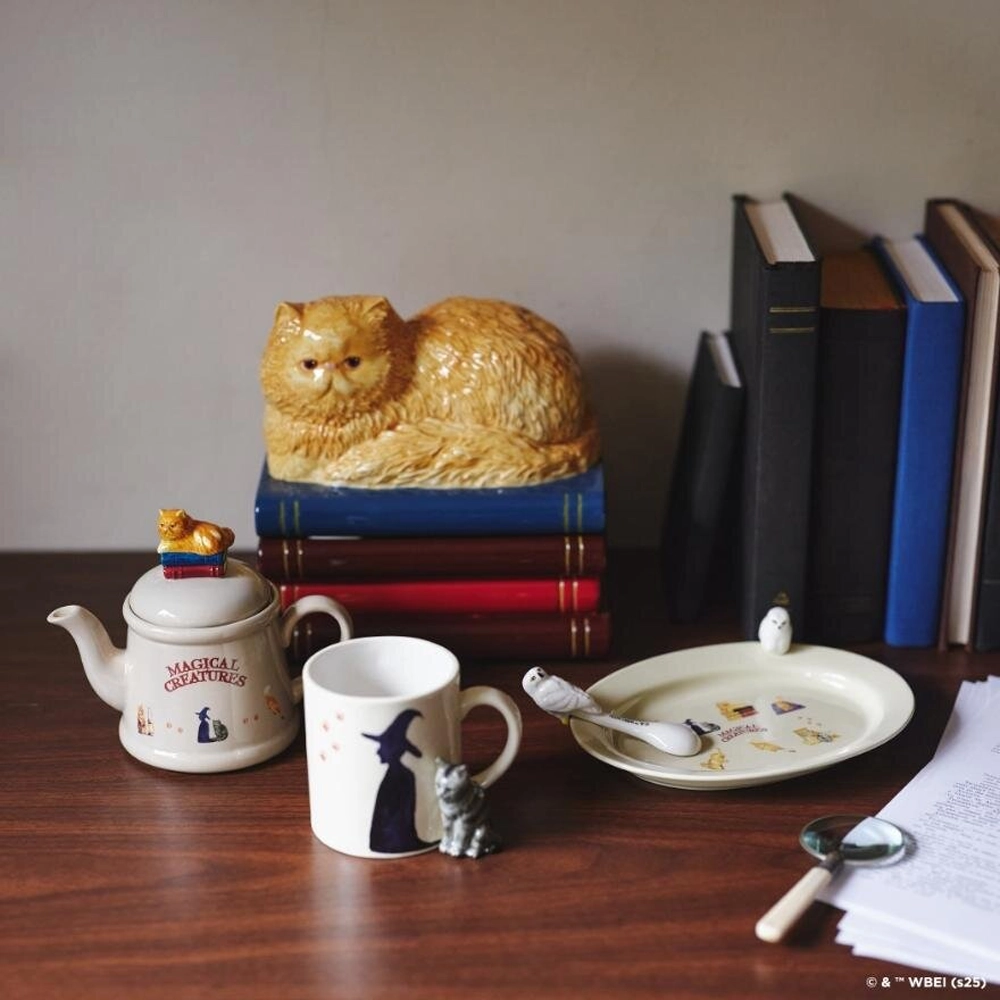 例えばこちら、ティータイムに欠かせないマグカップに、猫に変身するマクゴナガル先生や、伸び耳にいたずらするハーマイオニーのペット・クルックシャンクス、ハリーのペットの白フクロウ・ヘドウィグなど、遊び心がたっぷりの可愛らしいデザインが施されています。