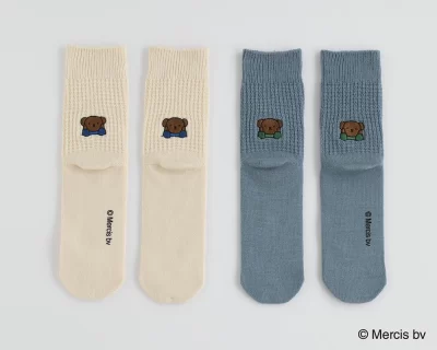例えばこちら、頬杖をついたミッフィーの刺繍がかかとの上にちょこんとあしらわれたワッフルソックス。もちろんボリスデザインのものもありますよ!