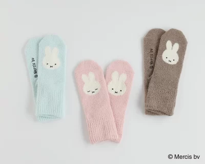 「ミッフィーもこもこアメリブショートソックス」は、左右で表情の異なるミッフィーがデザインされており、厚みのあるもこもこ素材とソフトなゴム口で足元を包み込むような仕上がりに。さらに、お部屋でのリラックスタイムでも履けるようショート丈になっているとのこと。