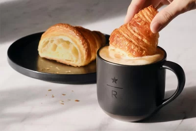 「スターバックス リザーブ カフェ」は、“日常の少し上質な大人のご褒美”をコンセプトとし、エスプレッソを使ったドリンクと、イタリアのクロワッサン「コルネッティ」とともに、コーヒーの楽しさを広げるような新しいスタイルのカフェベーカリーとなっています。