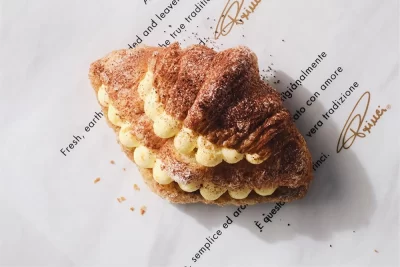 看板メニューの「コルネッティ」は、本場ミラノの製法を受け継ぎ、表面はザクザク、中はふわっとした食感が楽しめるそうです。イタリアンベーカリー「プリンチ」の定番商品でイタリア版のクロワッサンのようなメニューです。