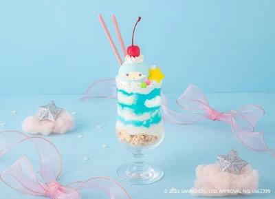 カフェでは、キキ&ララをイメージしたパフェやわたあめドリンクなどゆめかわいいメニューが勢揃い!