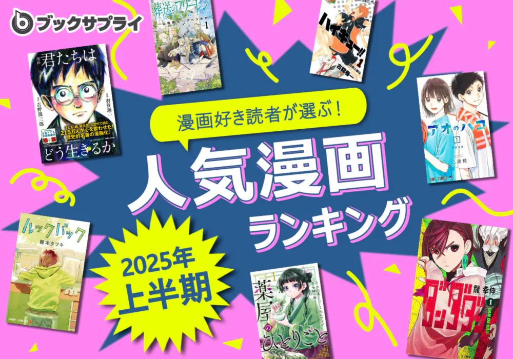 本、漫画、DVD、CDなどの買い取り・販売をしているブックサプライが、漫画をこよなく愛する皆さまへ贈る特別企画として、「何度でも読み返したい!漫画ファンが本気で選んだ2025年上半期ランキングTOP10」を発表しました。