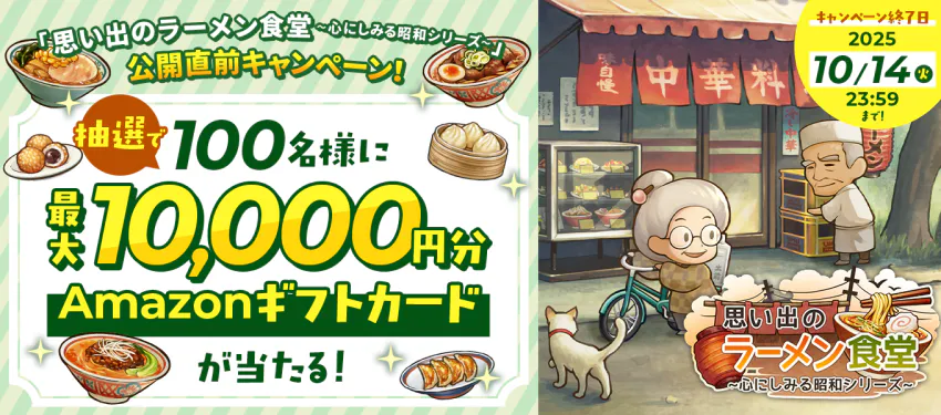 Amazonギフトカード(100名様、最大1万円分)が当たる‼️「思い出のラーメン食堂 ~心にしみる昭和シリーズ~」公開直前キャンペーン!🎉🍜