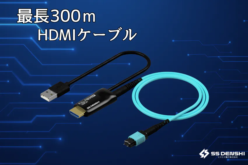 エスエス電子から発売されたFull Fiber HDMI 2.1は汎用光ファイバーを採用し最長300mの長距離伝送を実現しUltra High Speed(HDMI2.1)相当の8K60p/4K120p の高画質映像伝送に対応しています。