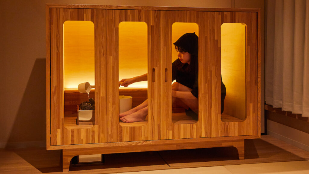 なんともオシャレな雰囲気のこちらのサウナは、株式会社Calが手掛ける家具のように空間に馴染みながら、サウナとして本格的なロウリュも楽しめる“新しい機能性家具”「Eine(アイネ)」です。