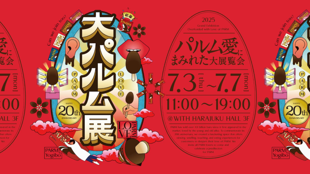 その他にも、20年の歴史の中で発売された「PARM(パルム)」の100種以上のラインアップを一挙に展示する「パルムのすべて」、一本の「PARM(パルム)」が生まれるまでの、普段は目にすることができない貴重な映像を公開した「誕生の瞬間」、またやわらかな感触が“まるで「PARM(パルム)」みたい”だという話題からYogiboとのコラボが実現し誕生した「パルムヨギボー」が楽しめる「PARMの庭」など、パルムラバーのための偏愛にまみれたコンテンツが盛りだくさんです!