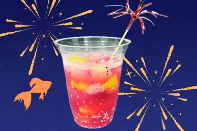 花火をイメージしたというフルーツソーダ「みつけて金魚花火ソーダ」には、マンゴーやドラゴンフルーツといったトロピカルフルーツがふんだんに使用されており、飲むだけで爽やかな気分に。