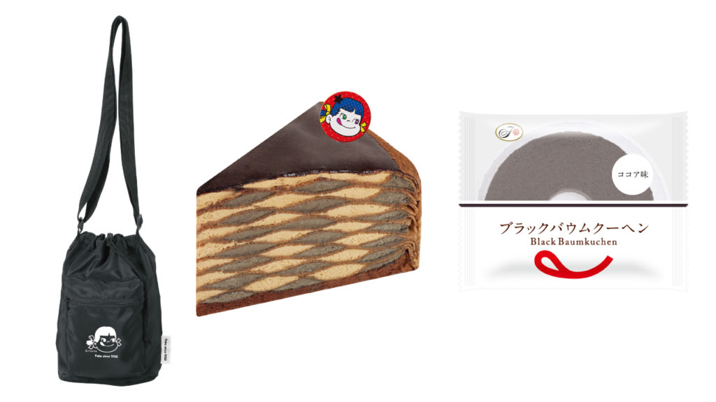 このキャンペーンは、「裏」ということでブラックをテーマカラーに「ペコちゃん巾着ショルダーバッグ」プレゼント企画やブラックな洋菓子新商品のほか、「ミルキー」ブランドからも裏不二家の日をテーマとした菓子新商品が登場するなど、ブラックに彩られた不二家洋菓子店が楽しめます。