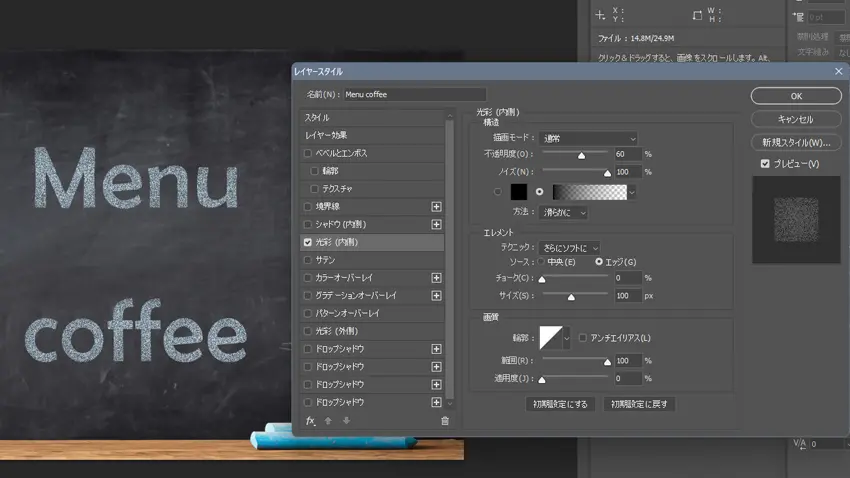 この文字にチョーク独特のざらついた感じの表現を加えてみましょう・