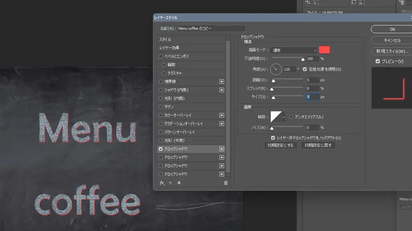 適すのとのレイヤーをダブルクリックして「レイヤースタイル」を表示させます。