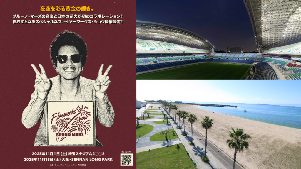 ブルーノ・マーズの楽曲と、日本の職人による繊細な花火が融合するこのショーは世界初の試みで、11月1日(土)に埼玉公演、11月15日(土)に大阪公演が予定されています。