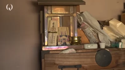 不穏すぎる部屋ですが、タンスの上には神棚が飾られていて、ディレクターはまさかのその神棚を開けてしまいます。中に入っていたのは何なのかがちょっとわかりませんが、なーんか嫌な感じです。