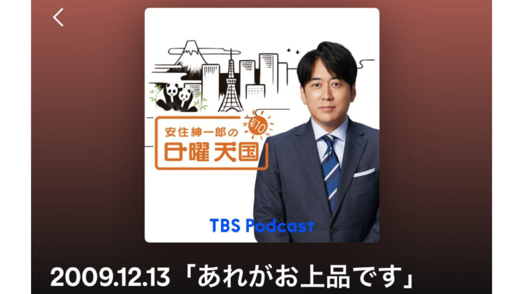 TBSアナウンサーの安住紳一郎さんが2005年4月からパーソナリティを務める毎週日曜日10時から放送のTBSラジオ番組『安住紳一郎の日曜天国』(以下「にち10」)。残念ながらTBSラジオの電波が届かない地域に住んでいるため、普段はポッドキャストで楽しんでいます。F2層(35歳~49歳 女性)の私が愛してやまない「にち10」のエピソードを紹介していくシリーズです。