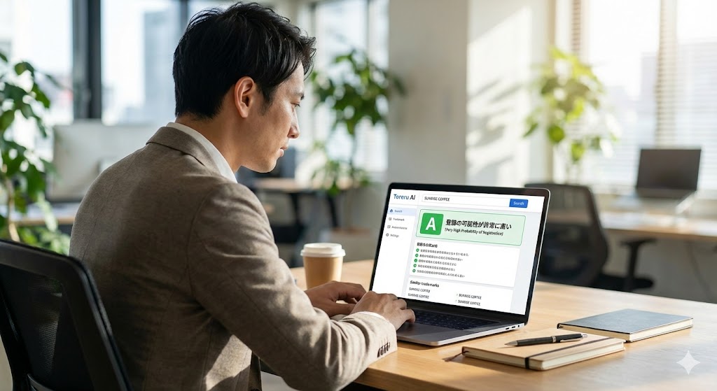 「とれるAI」は、ユーザーが考案した商標案(ネーミング)を入力するだけで、特許庁の審査を通過する可能性をAIが予測するサービスだ。