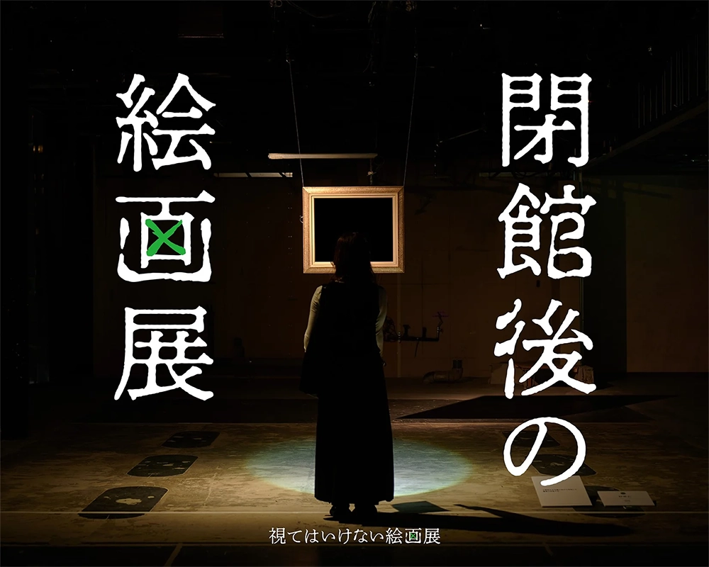 「視てはいけない絵画展」の夜の会場を巡る「閉館後の絵画展」は、来場者が懐中電灯を片手に暗い展示空間を歩きながら鑑賞するというもの。