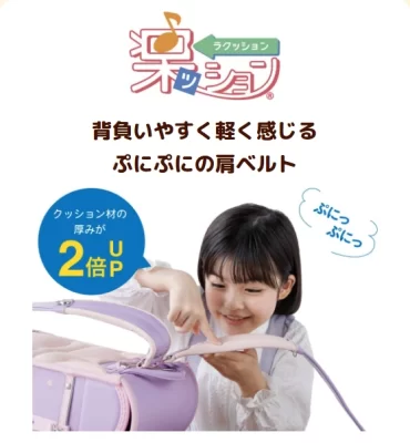 可愛いデザインだけでなく、背負いやすい“ぷにぷに”の肩ベルト「楽ッション」や雨の日や薄暗い夕方、車のライトなどでピカッと光る「安ピカッ」などの安全性に考慮したフィットちゃんならではの機能が備わっているのも嬉しいポイント!(しかも6年間の修理補償付き!)