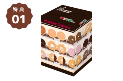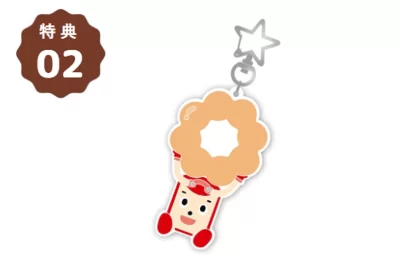 さらに、今回のコラボだけの限定特典として、ミスドのショーケースをイメージしたパッケージでお届けされるのと、オリジナルラバーキーホルダーが付いてきます。