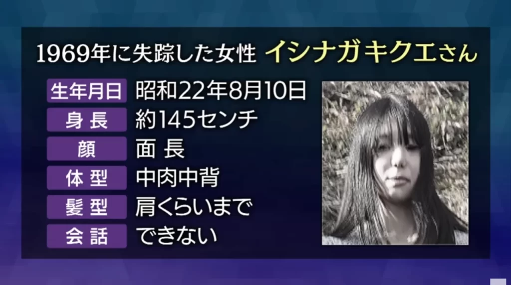 第1弾のテーマは、1969年から行方不明になっている女性「イシナガキクエ」さんの公開捜索。