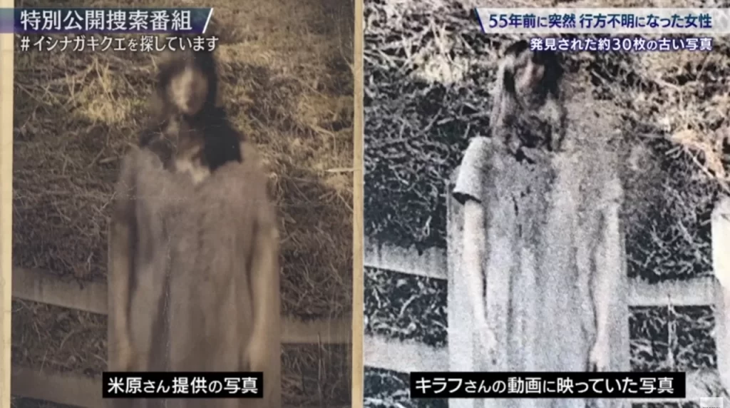 山奥の空き家(心霊スポット)を探索中、押し入れから見つかったのは、イシナガキクエさんに酷似した女性の生写真。写真には1枚ずつ番号が振られており、その数は30枚以上に及びます。