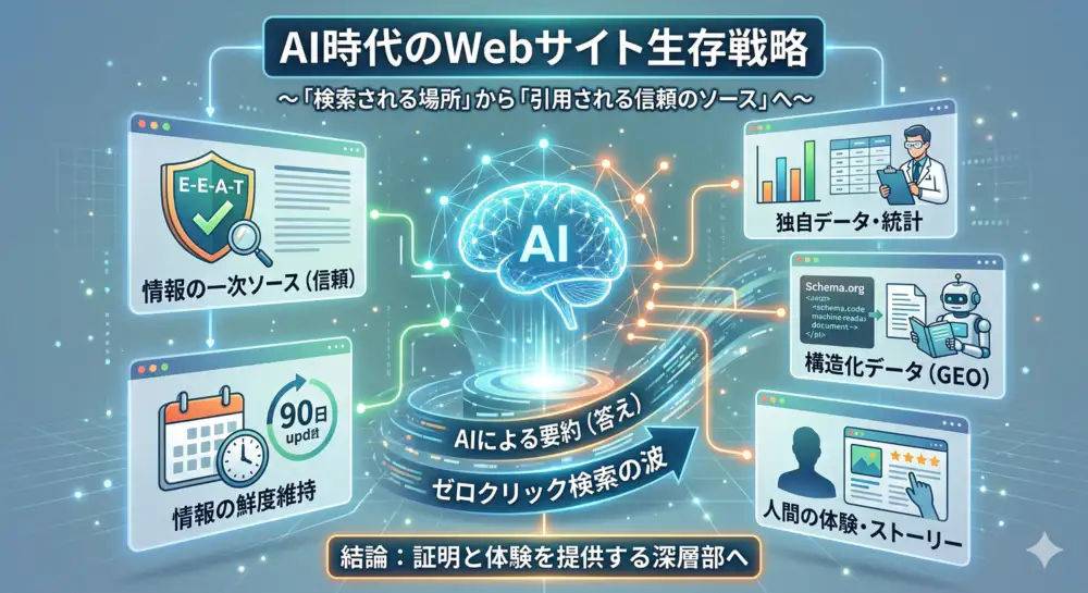 この3つを意識したコンテンツは、「AIに学習素材を提供しつつ、AIには代替されない価値を持つ」という理想的なポジションを取ることができます。