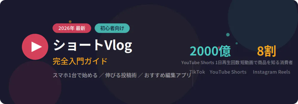 ショートVlogは、スマホ1台・特別な技術ゼロからでも始められる、2026年現在のSNS発信の中で最もハードルが低いコンテンツ形式の一つです。